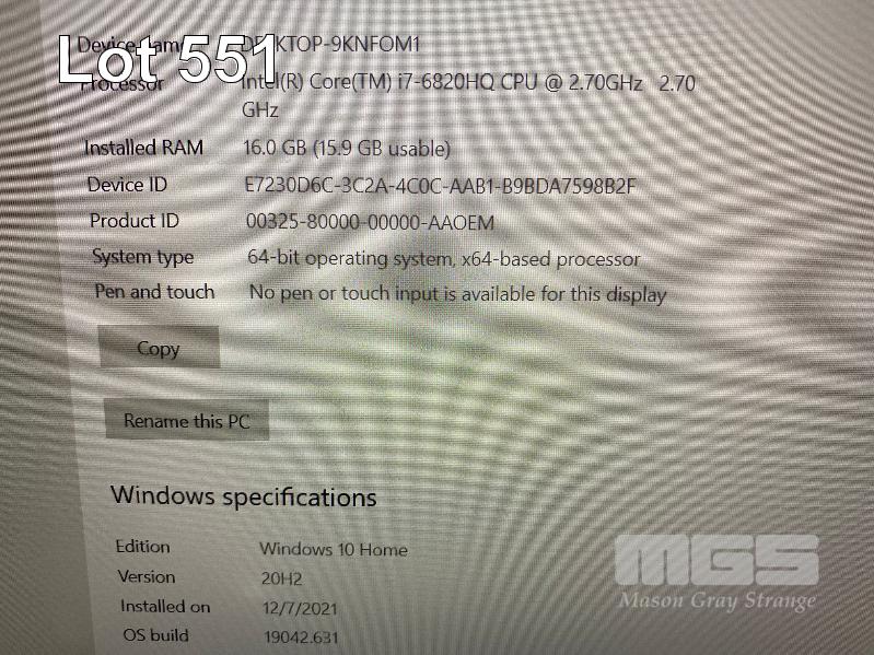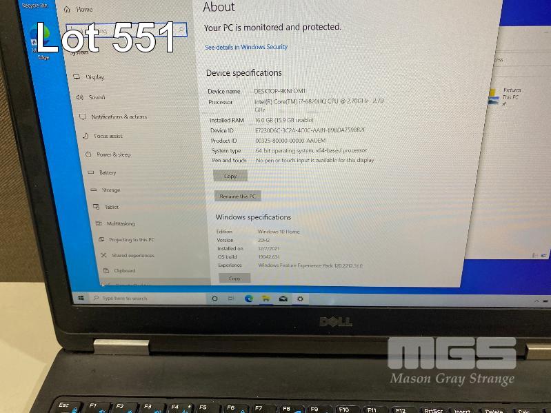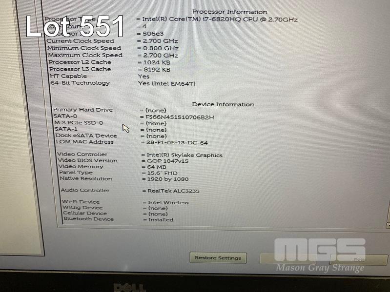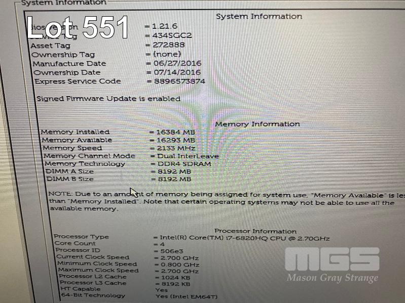 LAPTOP, DELL LATITUDE E5570, CORE i7 6820HQ (6TH GEN) @ 2.7GHz, 16GB DDR3 RAM, 512GB SSD, 15.6" WIDESCREEN (1920x1080), INTEL SKYLAKE GRAPHICS, Wi-Fi, BLUETOOTH, WINDOWS 10 HOME INSTALLED, DOCKING STATION & POWER SUPPLY (NOTE: MARKS ON SCREEN, WHITE SPOT SCREEN BLEMISHES) S/N:434SGC2