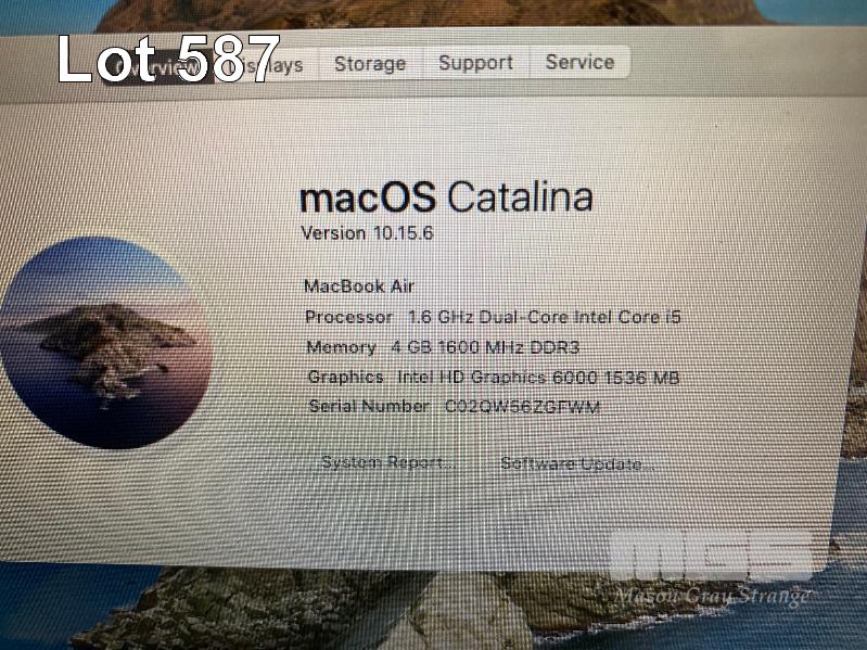 LAPTOP, APPLE MACBOOK AIR (A1465), CORE i5 5250U (5TH GEN) @ 1.6GHz, 4GB DDR3 RAM, 128GB SSD, 11.6" WIDESCREEN (1366x768), INTEL HD VIDEO, Wi-Fi, MAC OS 10.15 INSTALLED & POWER SUPPLY S/N:C02QW56ZGFWM