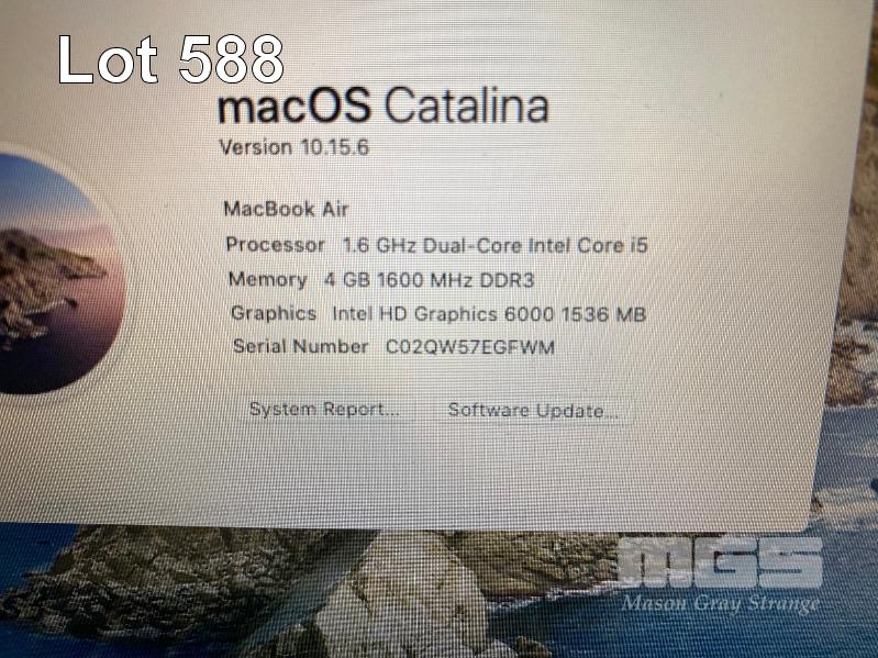 LAPTOP, APPLE MACBOOK AIR (A1465), CORE i5 5250U (5TH GEN) @ 1.6GHz, 4GB DDR3 RAM, 128GB SSD, 11.6" WIDESCREEN (1366x768), INTEL HD VIDEO, Wi-Fi, MAC OS 10.15 INSTALLED (NO POWER SUPPLY) S/N:C02QW57EGFWM