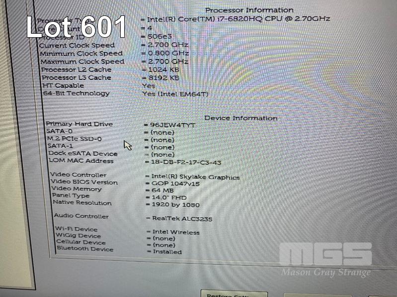 LAPTOP, DELL LATITUDE E5470, CORE i7 6820HQ (6TH GEN) @ 2.7GHz, 16GB DDR4 RAM, 1TB SATA HDD, 14" WIDESCREEN (1920x1080), INTEL SKYLAKE GRAPHICS, Wi-Fi, BLUETOOTH, WINDOWS 10 HOME INSTALLED & POWER SUPPLY (NOTE: NO BATTERY) S/N:BBV1QC2