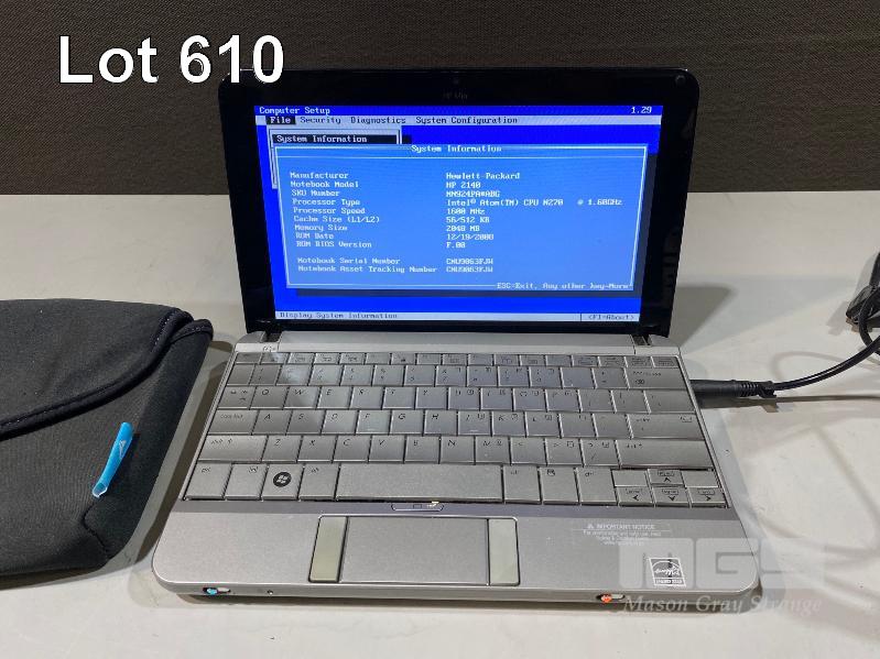 NETBOOK, HP 2140, ATOM N270 @ 1.6GHz, 2GB RAM, 160GB HDD, POWER SUPPLY & SLEEVE