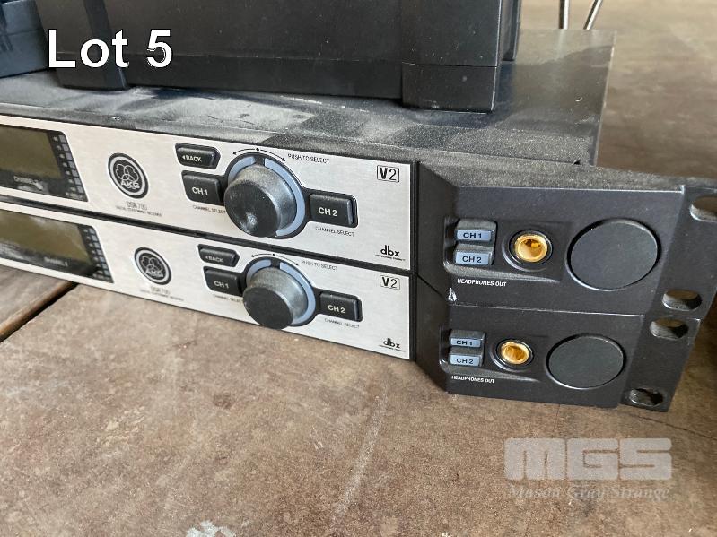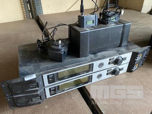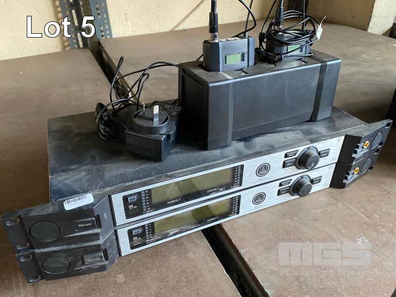 2 x AKG DSR700 V2 DIGITAL WIRELESS STATIONARY RECEIVERS WITH 2 x DPT700 BODYPACK TRANSMITTERS, LAPEL MICROPHONES & CU700 CHARGING UNIT WITH POWER SUPPLY