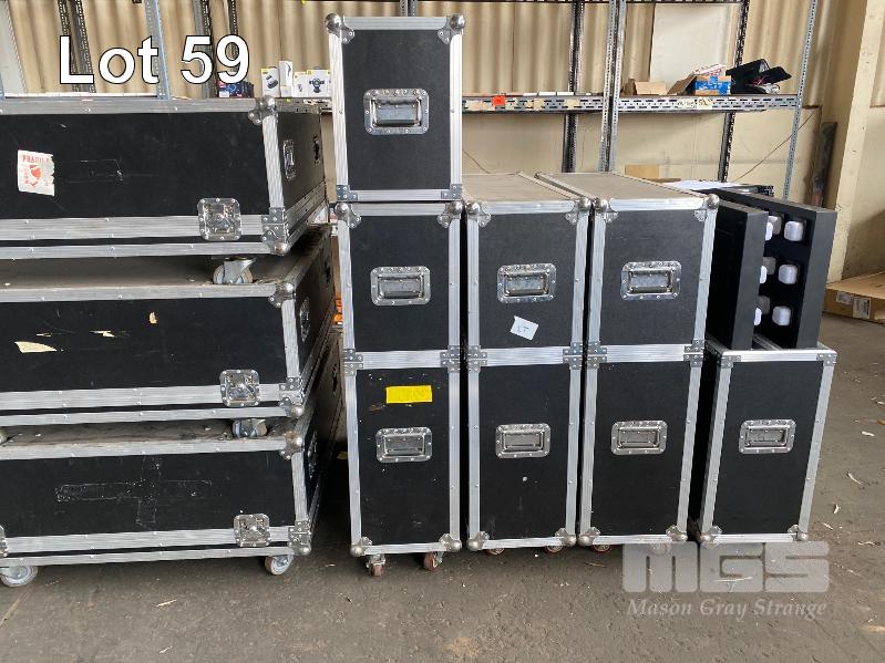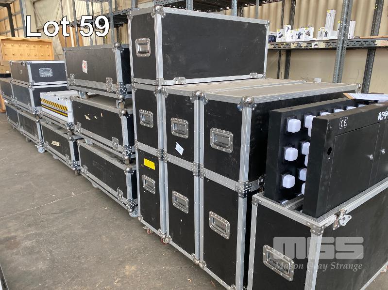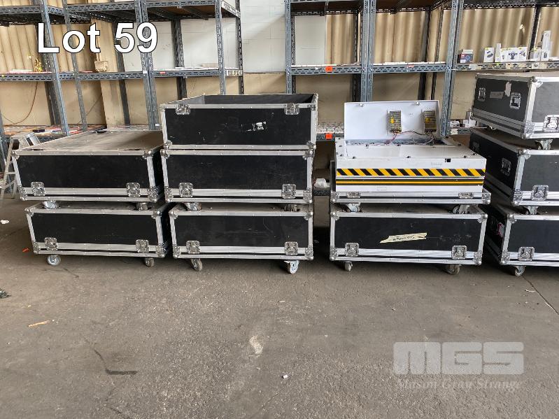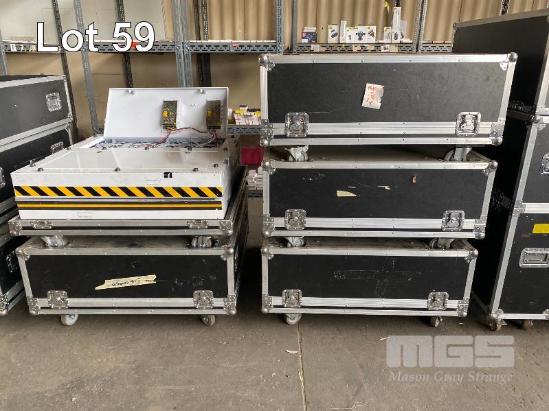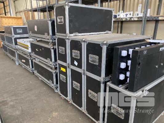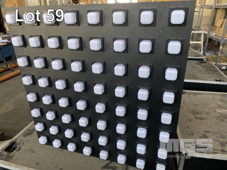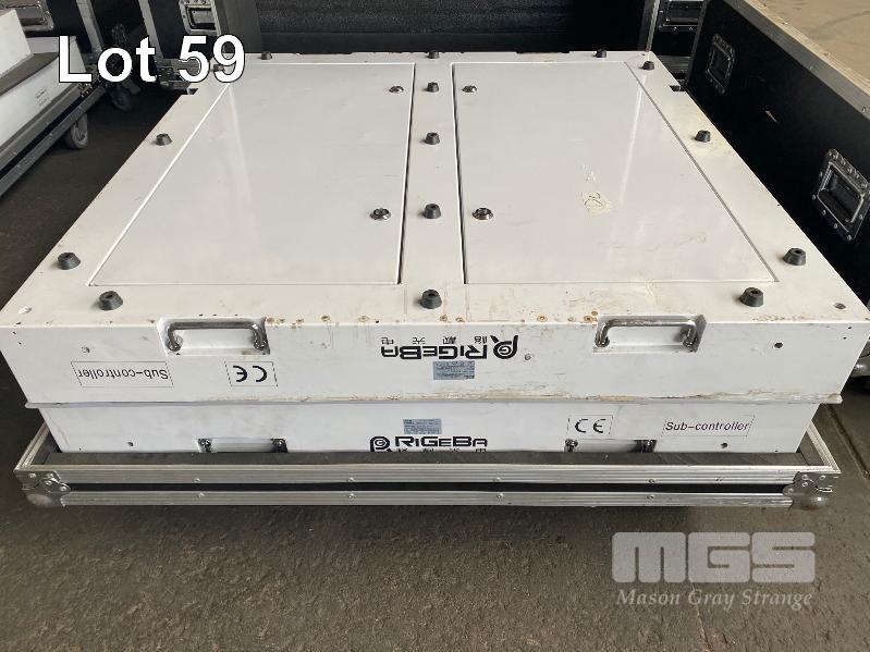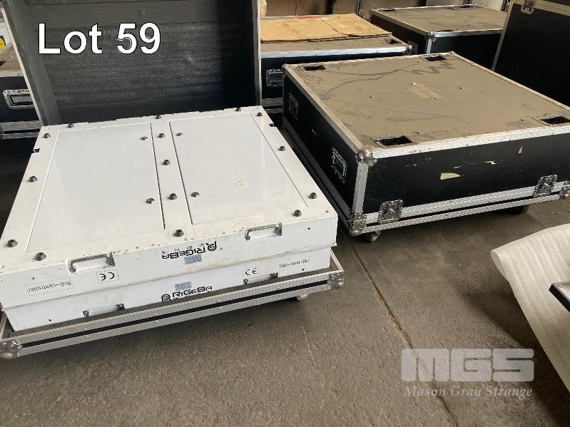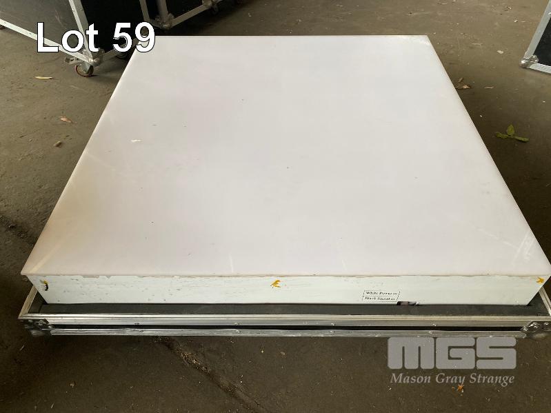 RIGEBA MODULAR LED DANCE FLOOR, COMPRISING 17 x RIGEBA DANCE FLOOR PANELS, MODEL RG-DDF56S125-V0, PANEL SIZE 1m x 1m, IN 9 x ROAD CASES 8 x RIGEBA LED BACK WALLS, MODEL RG-PDS56S125IA-V0, PANEL SIZE 1m x 1m, 4 x ROAD CASES