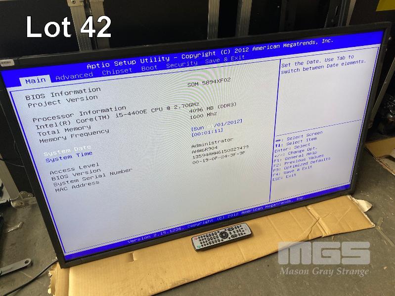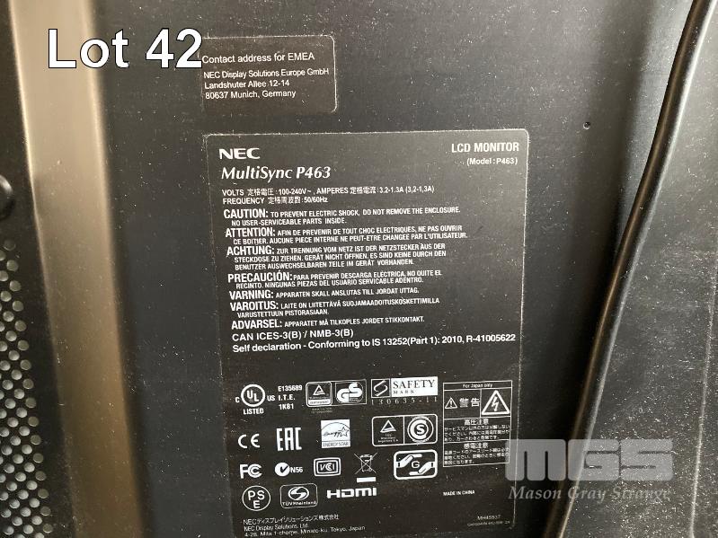 MONITOR, NEC MULTISYNC P463 46" COMMERCIAL LCD DISPLAY, BUILT-IN PC MODULE, CORE i5 4400E @ 2.7GHz, 4GB RAM, 64GB SSD WITH REMOTE & WALL MOUNT BRACKET (NO STAND)