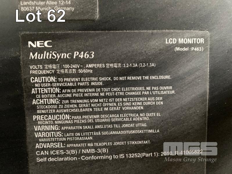 MONITOR, NEC MULTISYNC P463 46" COMMERCIAL LCD DISPLAY, BUILT-IN PC MODULE, CORE i5 4400E @ 2.7GHz, 4GB RAM, 64GB SSD WITH REMOTE (NO STAND) (NOTE: SCRATCHES ON SCREEN)