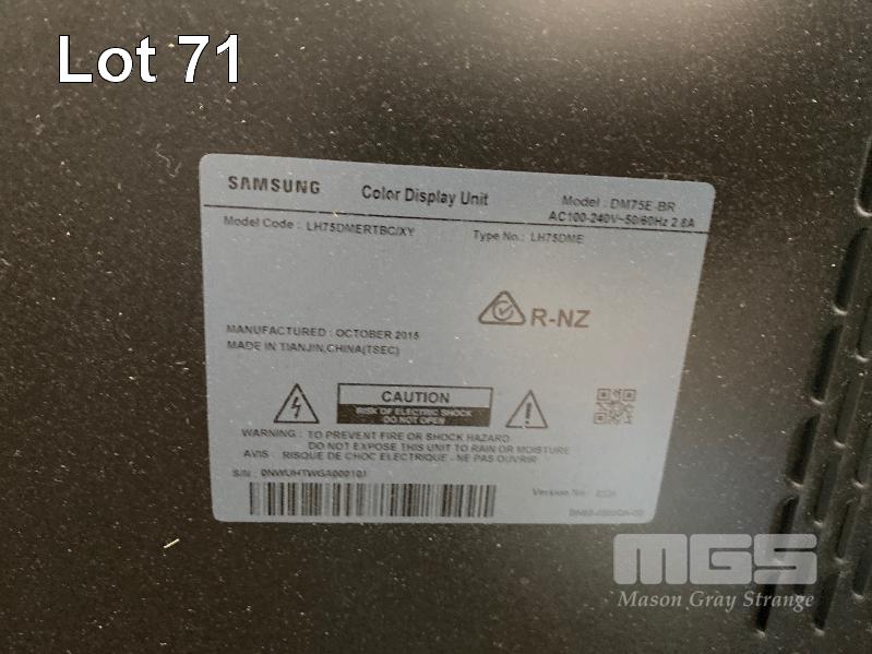 MONITOR, SAMSUNG DM75E-BR 75" e-BOARD TOUCHSCREEN LCD DISPLAY, MODEL LH75DMERTBC/XY WITH WALL MOUNT BRACKET