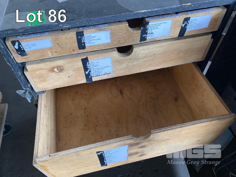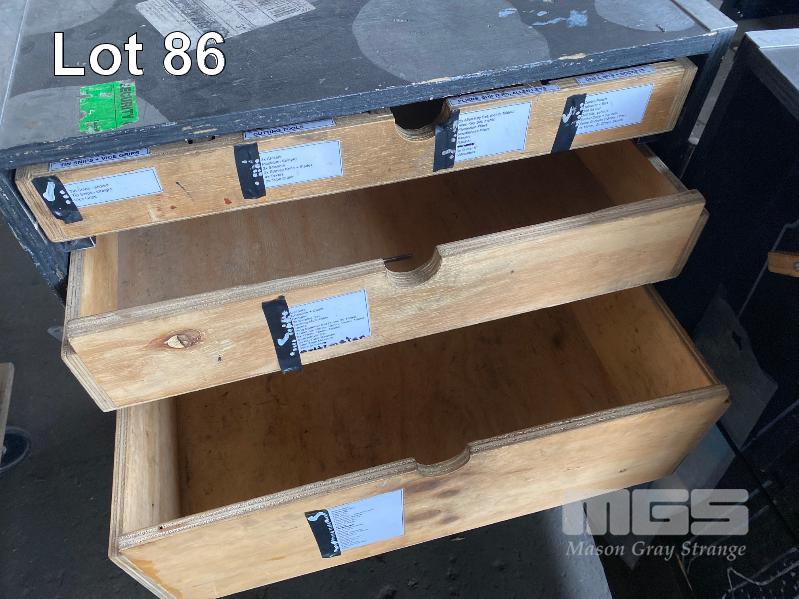 MOBILE TIMBER ROAD CASE, COMBINATION DRAWER UNIT & COMPARTMENT, 59 x 53 x 86cm