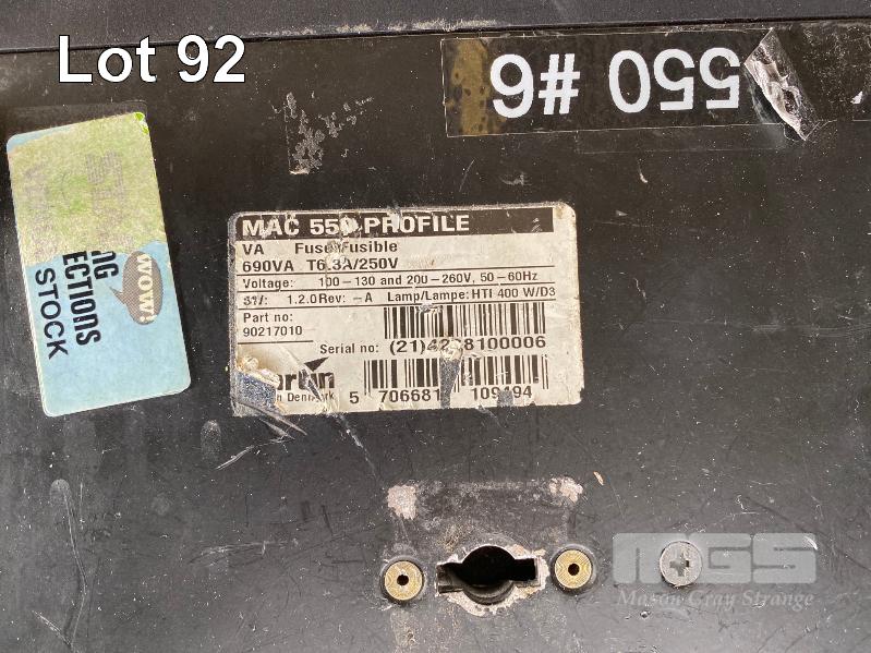 2 x MARTIN MAC 550 MOVING HEAD PROFILE SPOT LIGHTS, IN MOBILE ROAD CASE, 96 x 54 x 83cm