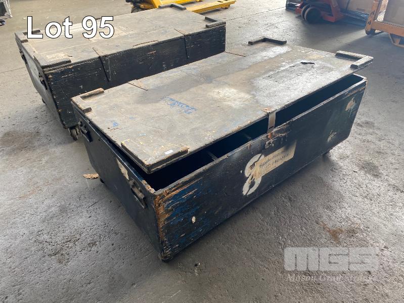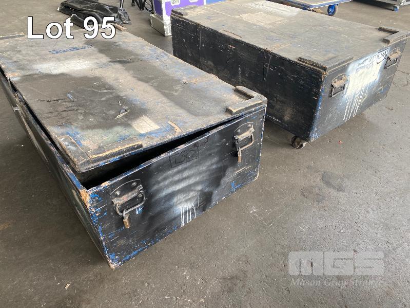 2 x MOBILE TIMBER ROAD CASES, 122 x 69 x 18cm