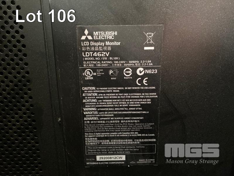 MONITOR, MITSUBISHI LDT462V 46" COMMERCIAL LCD DISPLAY WITH TOUCHSCREEN OVERLAY (NO REMOTE, NO STAND) S/N:29200812CW