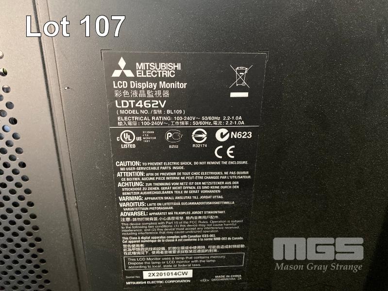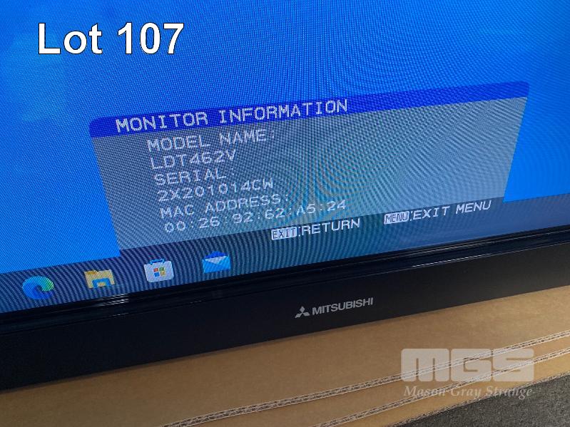 MONITOR, MITSUBISHI LDT462V 46" COMMERCIAL LCD DISPLAY WITH TOUCHSCREEN OVERLAY (NO REMOTE, NO STAND) S/N:2X201014CW