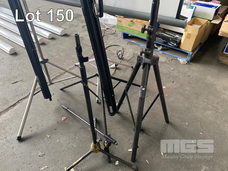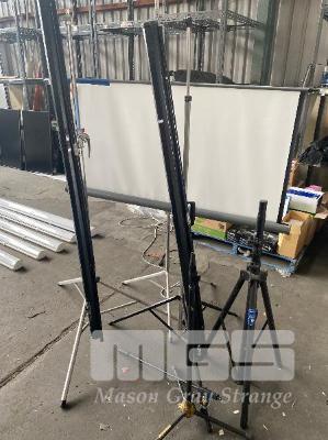 3 x ASST TRIPOD PROJECTION SCREENS, 1 x SPEAKER & 1 x MICROPHONE STAND
