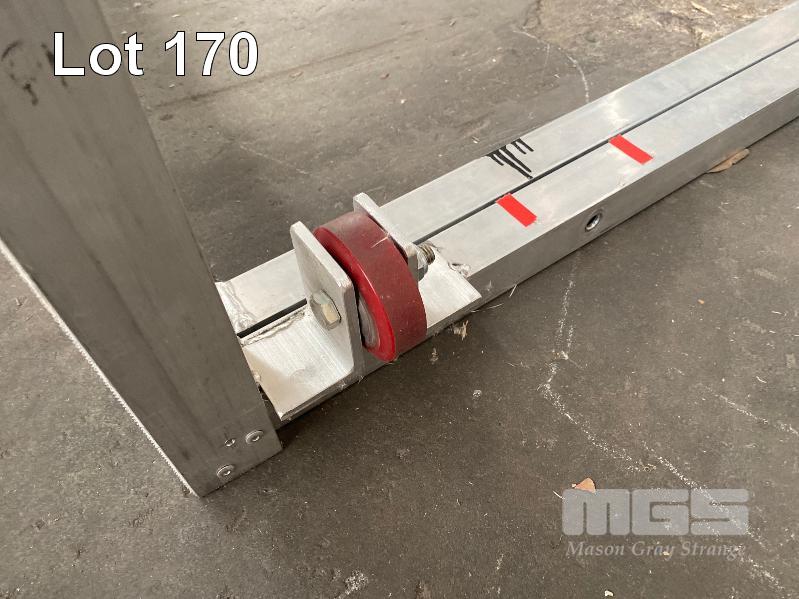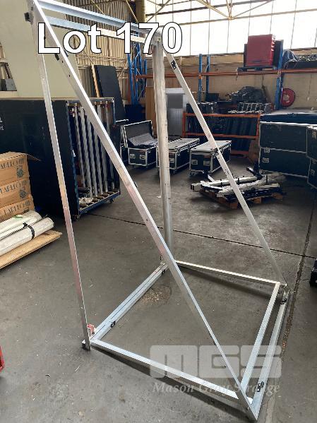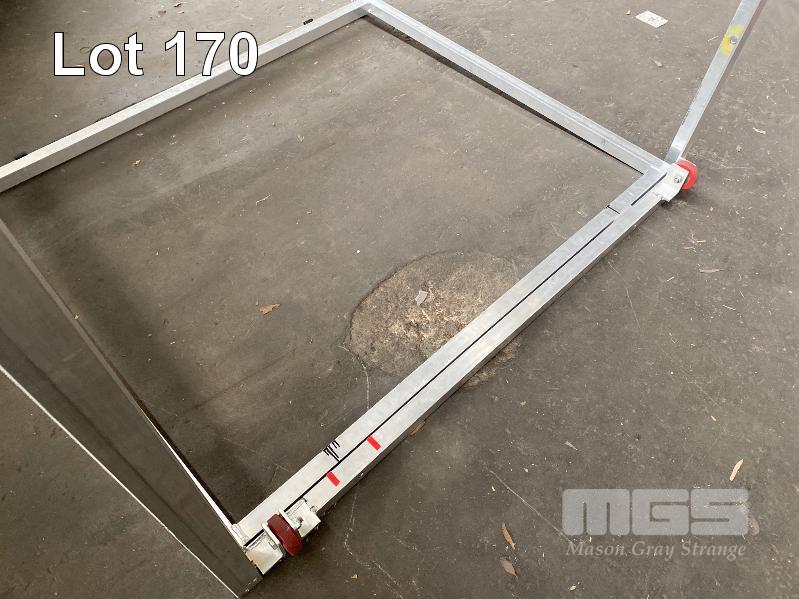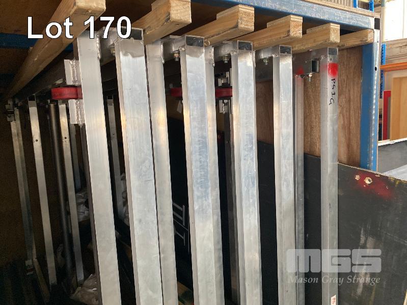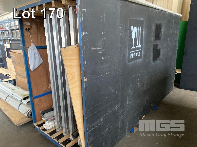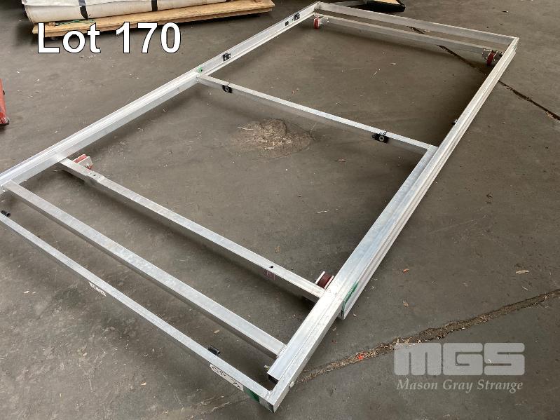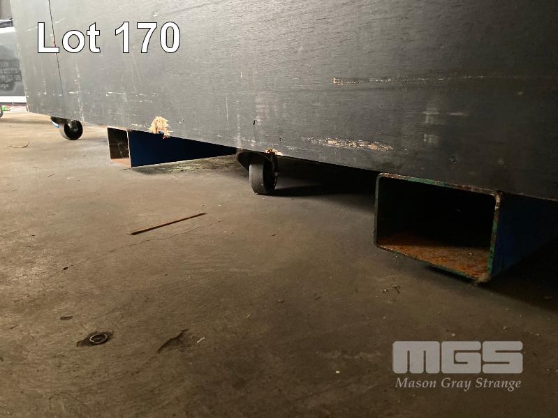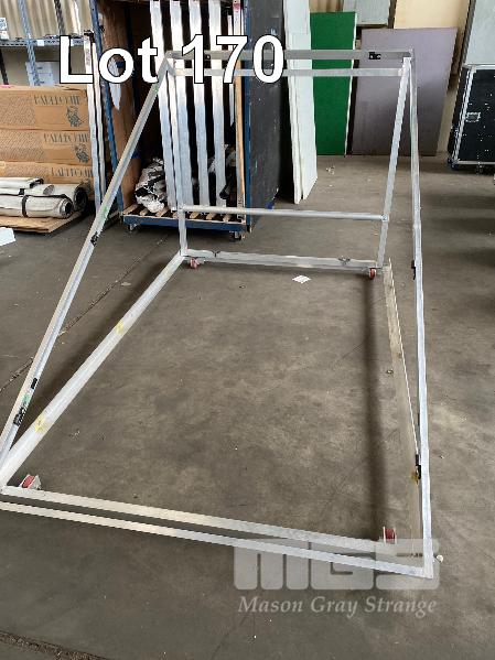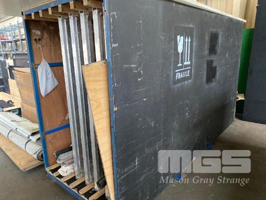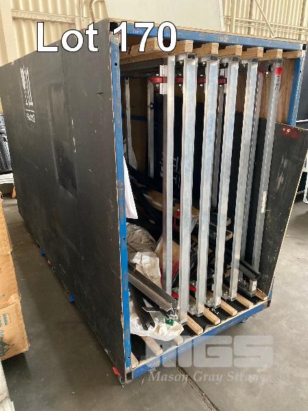 LARGE ROADCASE SET INC. STEEL FRAME MOBILE TIMBER ROAD CASE, 302 x 186 x 118cm, WITH 7 x ALUMINIUM FRAMES WITH WHEELS, TIMBER SPACERS & ASST ALLOY SECTIONS