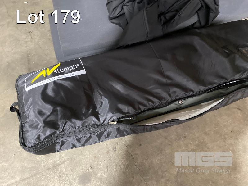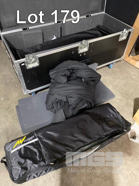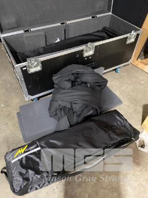 AV STUMPFL MONOBLOX PORTABLE REAR PROJECTION SCREEN (NO LABEL) IN ENCORE ROAD CASE, 140 x 56 x 66cm WITH SOFT BAG