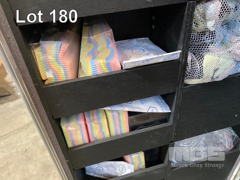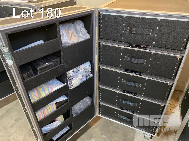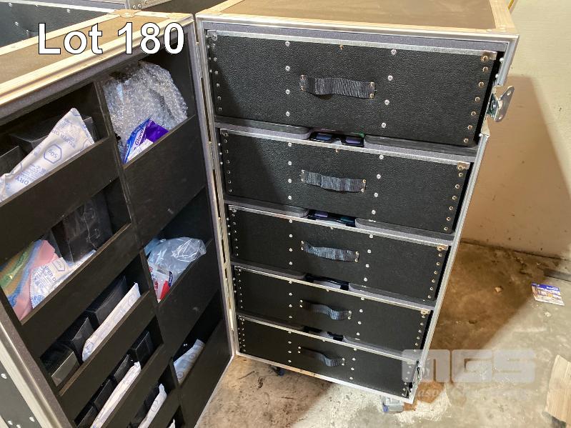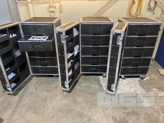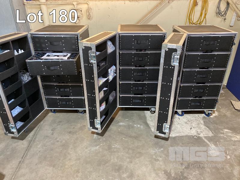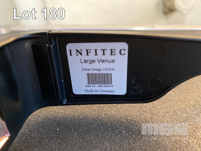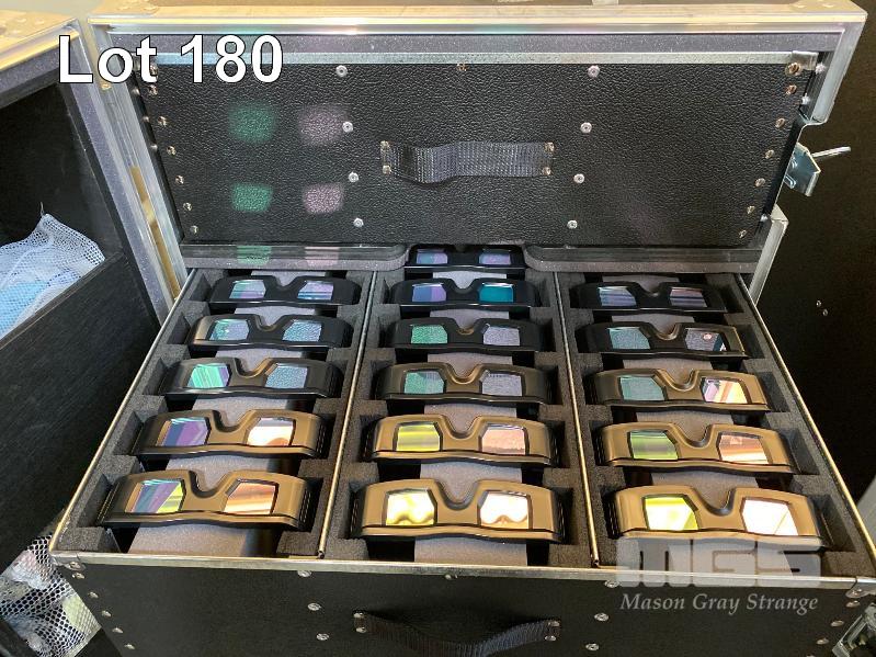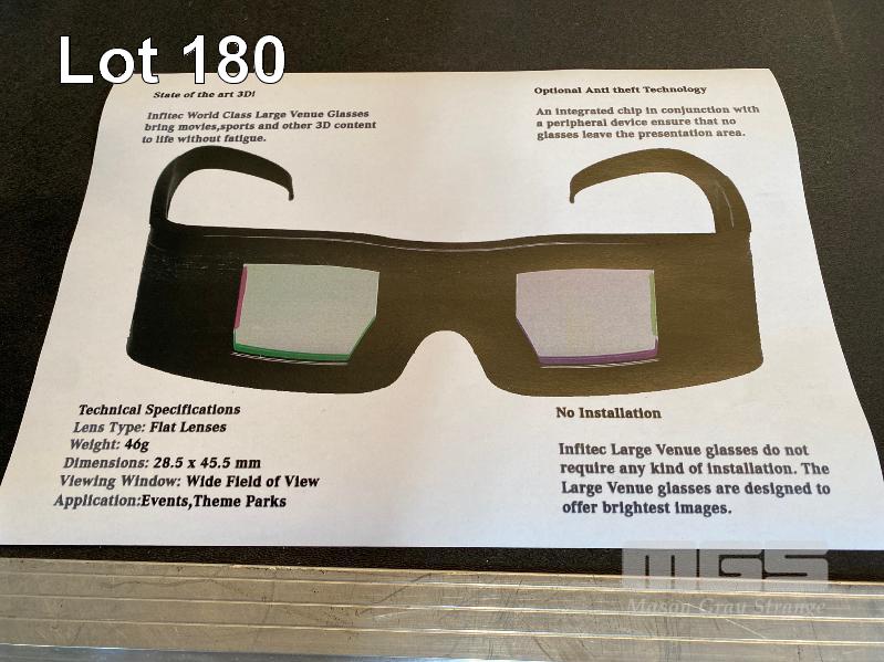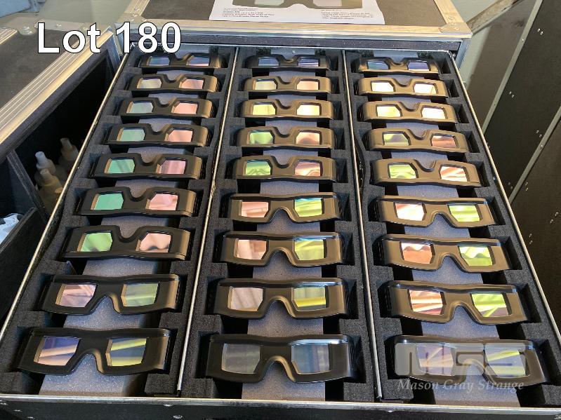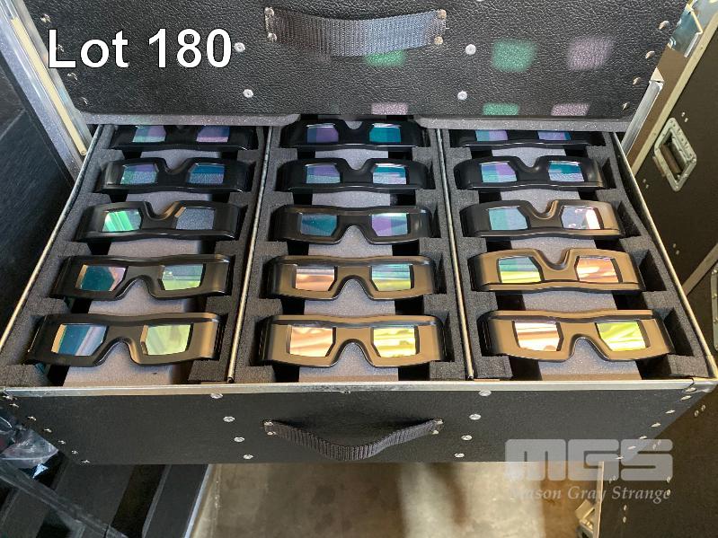 405 x INFITEC LARGE VENUE 3D GLASSES, ITEM NO 100104013, WITH 3 x MOBILE ROAD CASES, EACH 5 DRAWER, WITH ASST SPARE CONSUMABLES