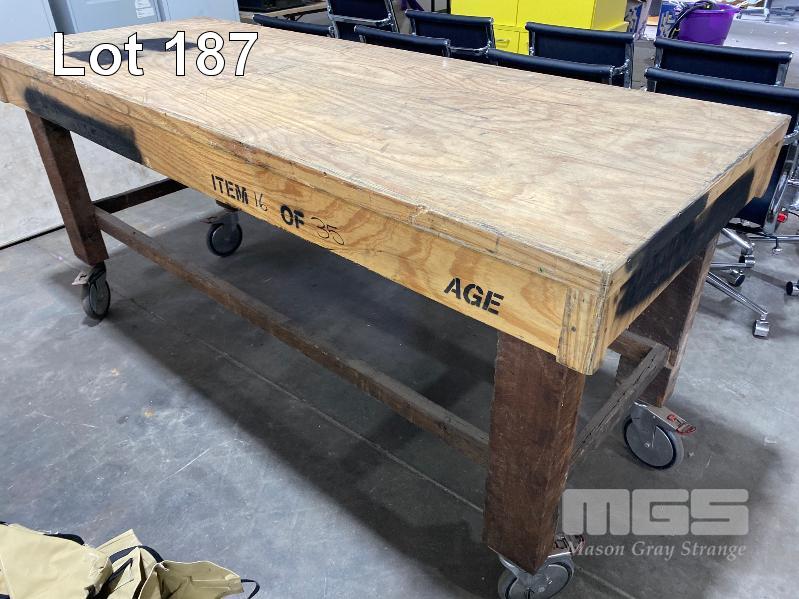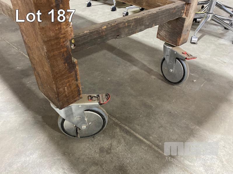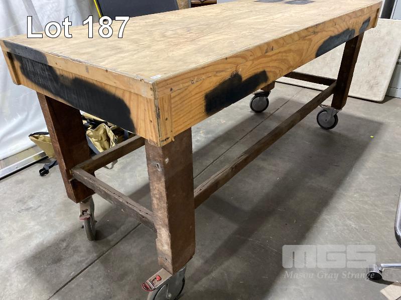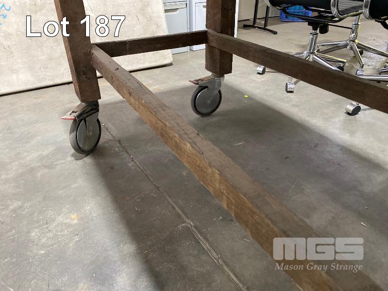 MOBILE TIMBER WORKBENCH, LOCKABLE CASTORS, 206 x 79cm
