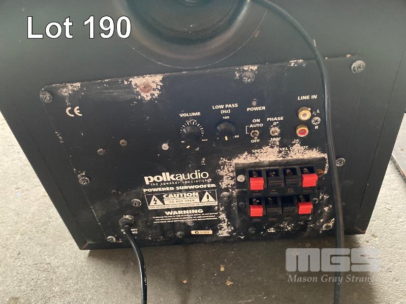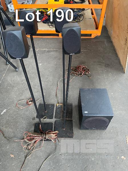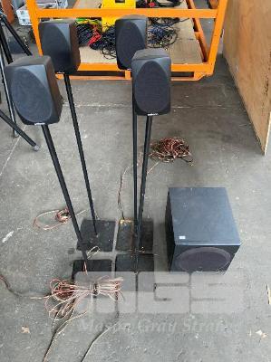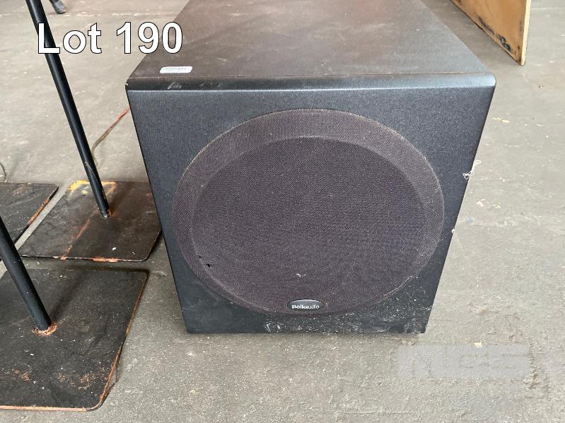 POLK AUDIO POWERED SUBWOOFER & 4 x SPEAKERS ON STANDS
