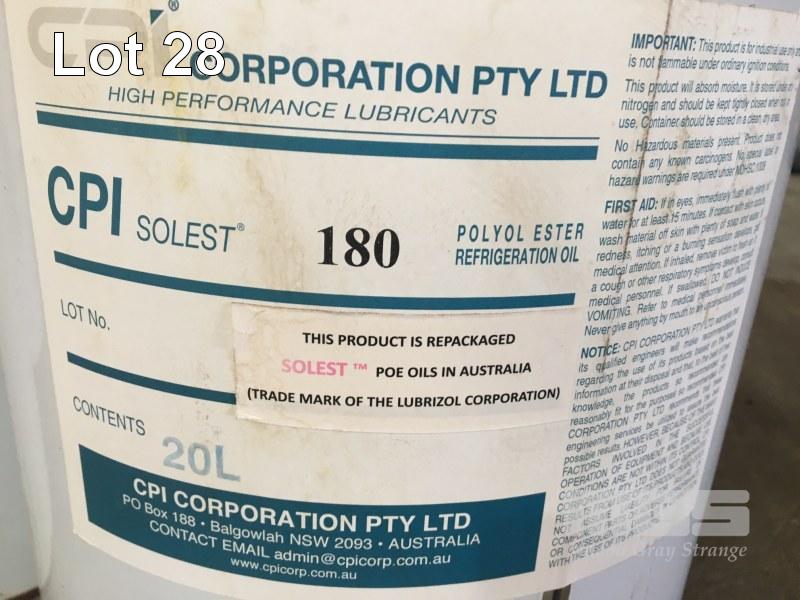 4 x DRUMS REFRIGERATION OIL, CPI SOLEST 180, 20 LITRE