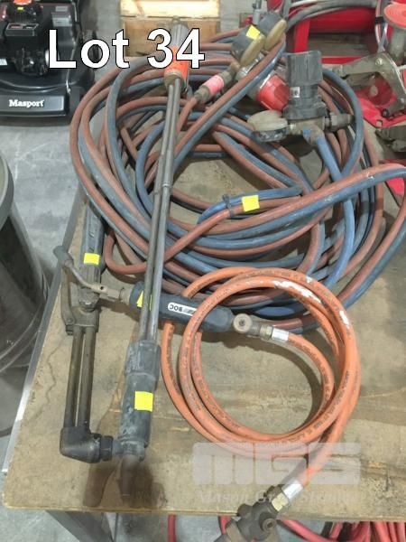 OXY ACETYLENE CUTTING TORCH SET, REGULATORS, HOSES, LONG REACH CUTTING TORCH ETC