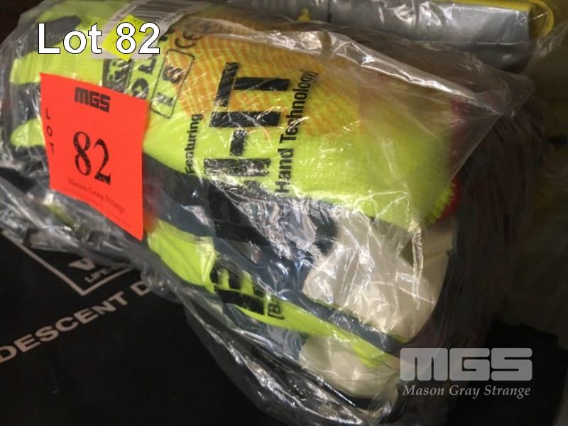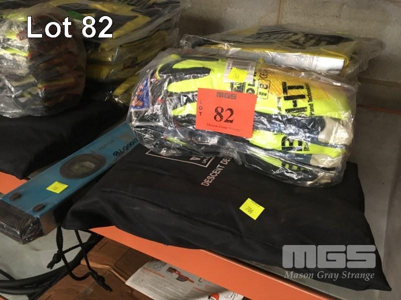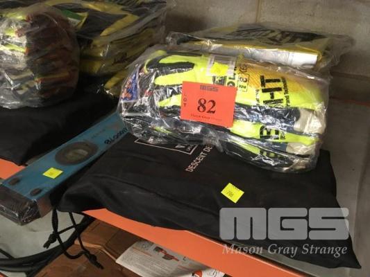 7 x HI VIS WORK SHIRTS, WORK KIT, SIZE 16, 12 x PAIRS PRO SENSE BHT HI VIS SAFETY GLOVES, SPIRIT LEVEL & VIKING RESCUE DESCENT SEAT, (AS NEW)
