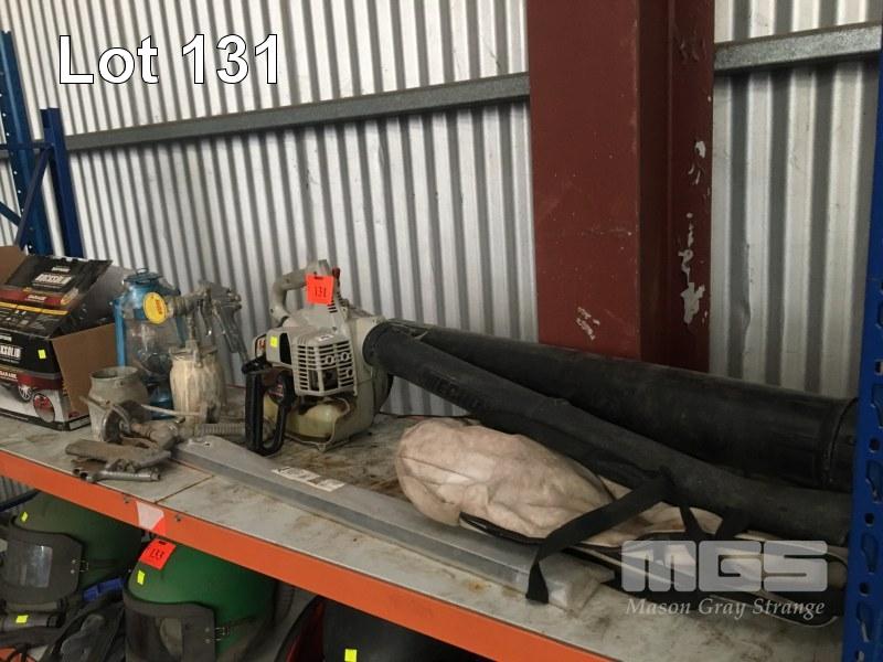 ECHO BLOWER VAC, SPRAY PAINTING GUNS & GARAGE FLOOR COATING SYSTEM, 1 x SHELF
