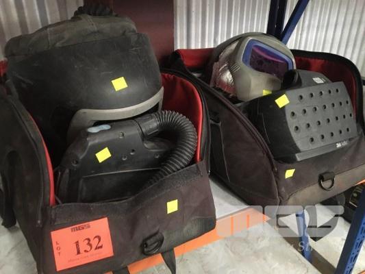 2 x SPEED GLASS WELDING HELMETS WITH 3M ADFLO POSITIVE AIR FEED UNITS, BATTERIES, CHARGERS & CARRY BAGS