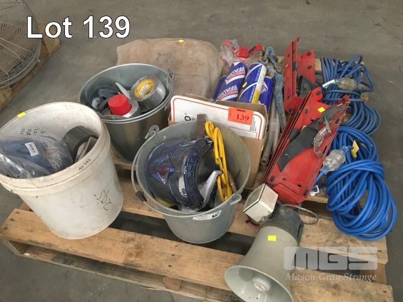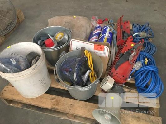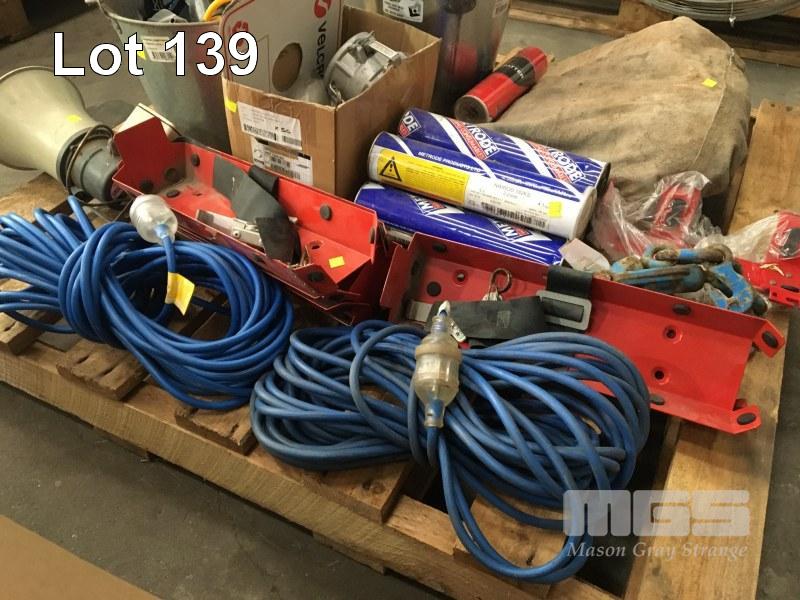 LEATHER WELDING BLANKET, ARC RODS, 240V EXTENSION LEADS, FITTINGS, EXTINGUISHER BRACKETS, ETC,