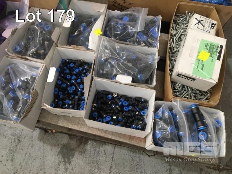 ASSORTED FASTENERS & FITTINGS INC PNEUMATIC SNAP ON T's, ELBOWS & VALVES, ELECTRICAL PLUGS, GRUNDFOS SEAL KITS, RUBBER MOUNTS, SPLIT PINS, ETC, 1 x PALLET