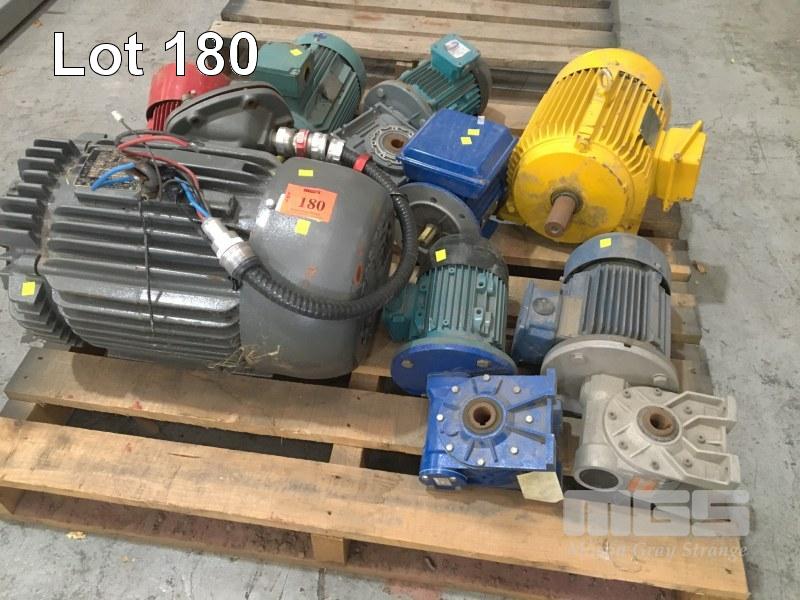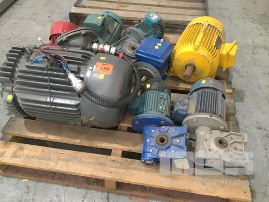8 x ASSORTED ELECTRIC MOTORS, INC CMG, 5.5kw, 415V, BALDOR 20HP, 415V, CROPTON 1.1kw, 415V, ETC, 2 x FITTED WITH RIGHT ANGLE GEAR BOXES, 1 x PALLET