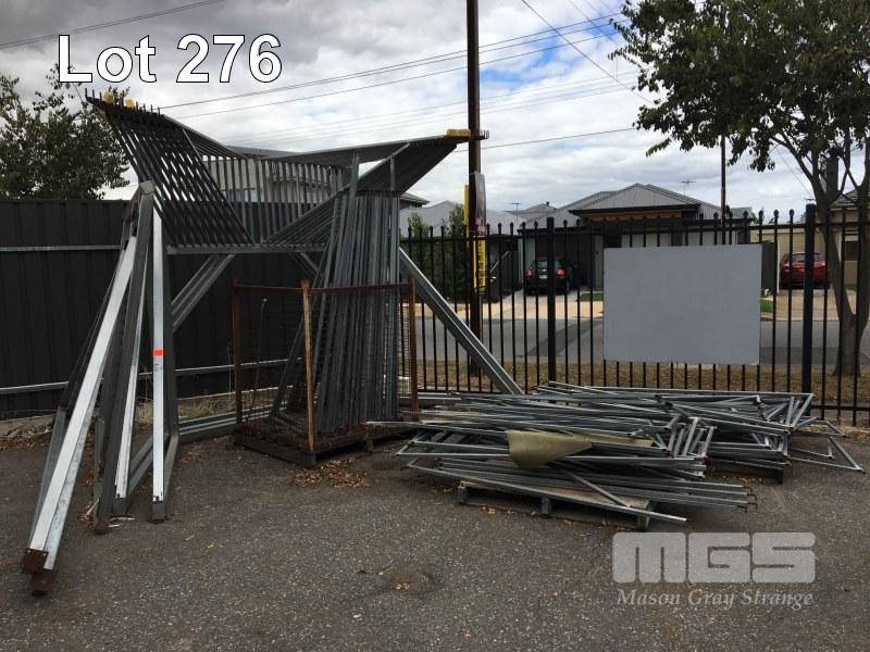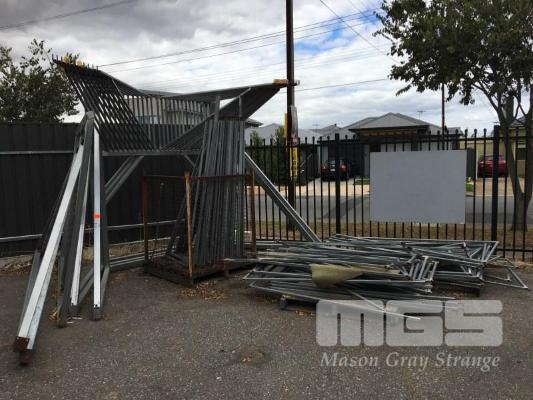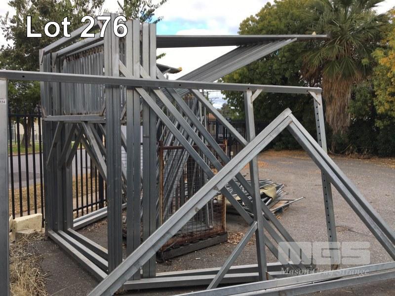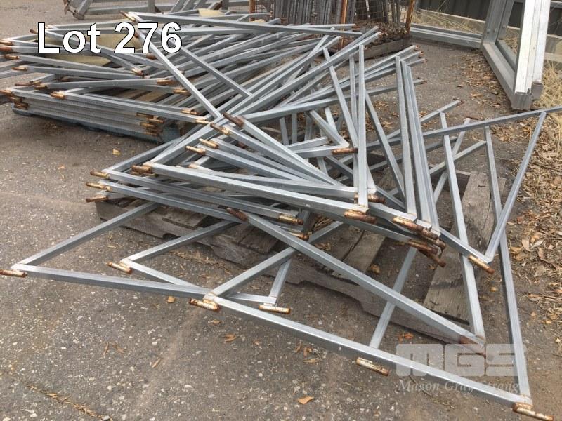 4 x RUG DISPLAY RACKS, GALV STEEL, SWING ARM, 25 x ARMS/RACK, FREESTANDING, BOLT TOGETHER