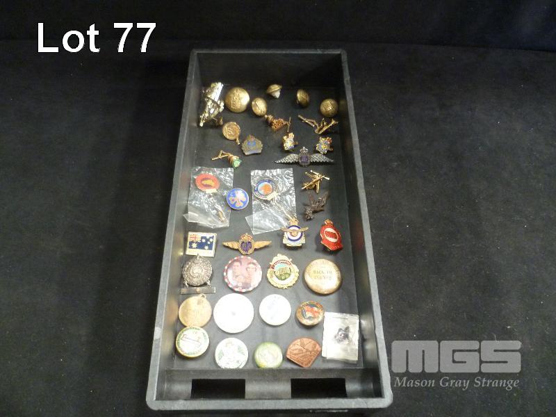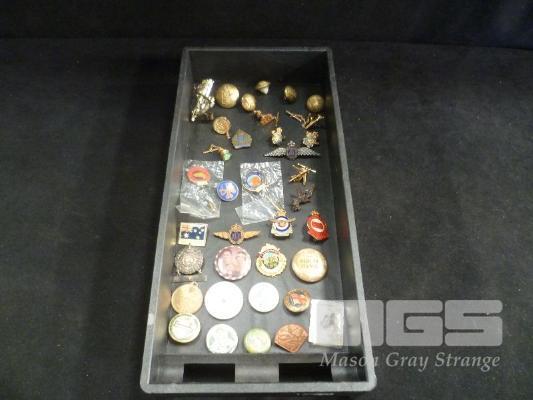 ASSORTED AUSTRALIA MILITARY & CIVILIAN BADGES, PINS, BUTTONS, ETC