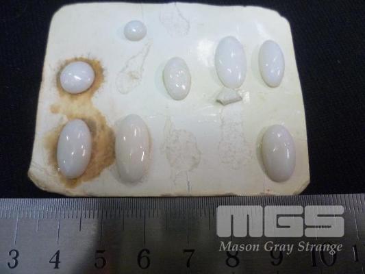 8 X SOLID OPALS, ATTACHED TO CARDBOARD