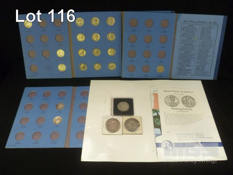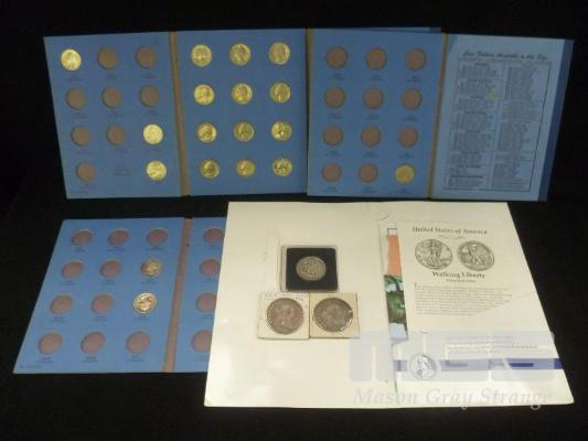 3 X USA, WASHINGTON HEAD COIN FOLDERS (18 X COINS), WALKING LIBERTY 1944 HALF DOLLAR, 1804 & 1803 DOLLAR