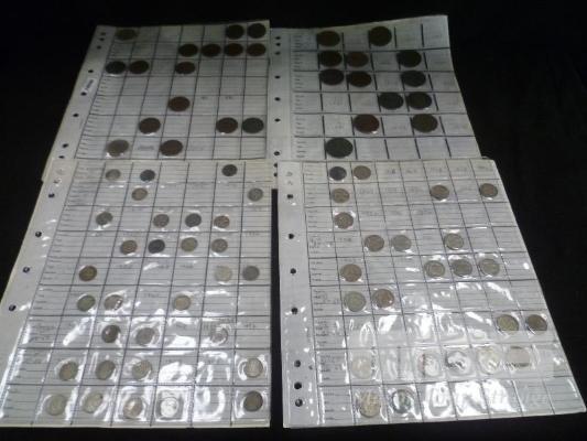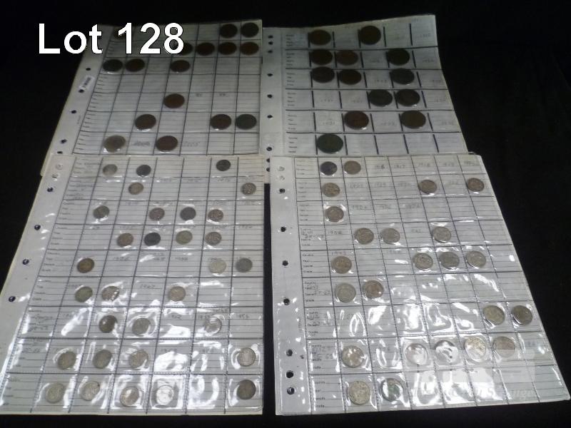 4 X SHEETS OF ASSORTED AUSTRALIAN PRE-DECIMAL COINS, INC; HALF PENNY, PENNY, THREEPENCE, SIXPENCE