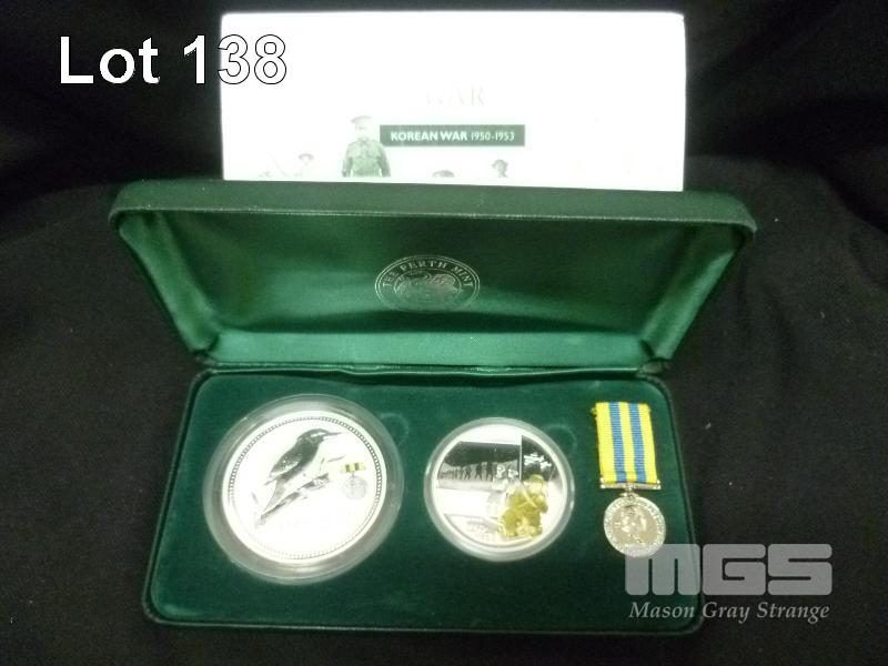 THE PERTH MINT, COIN & MEDALLION TRIBUTE SERIES, SILVER PROOF COLOURED COINS & MEDALLION, AUSTRALIANS AT WAR, KOREAN WAR 1950-1953, KOREAN WAR PRIVY MARK COIN 2oz PURE SILVER, KOREAN WAR MEDALLION 1oz PURE SILVER & KOREAN MEDAL, 788/1000