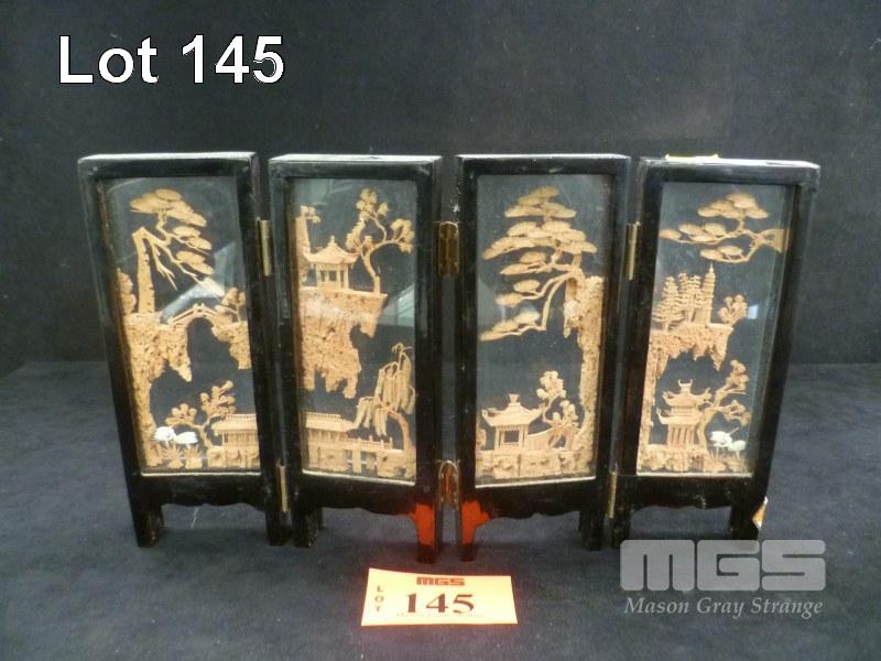 ORIENTAL 4 PANEL CORK DIORAMA, 17cm (H)