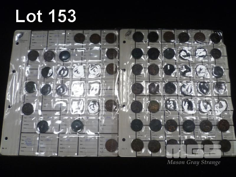 COLLECTION OF EARLY BRITISH COINS, INC; FARTHINGS, HALF PENNY, PENNY, THREE PENCE, SIX PENCE & SHILLINGS