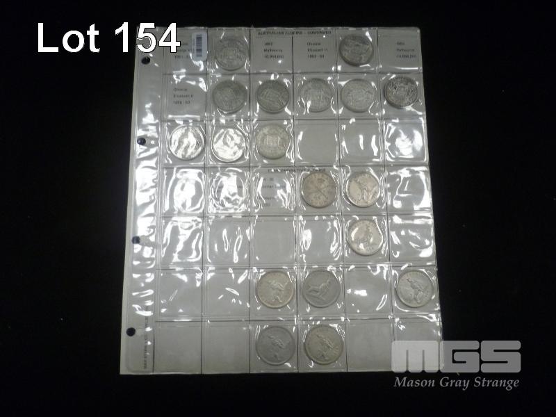 18 X AUSTRALIA FLORINS, INC; 10 x INDIVIDUAL DATES, 1 X 1951 & 7 X 1954 COMMEMORATIVE