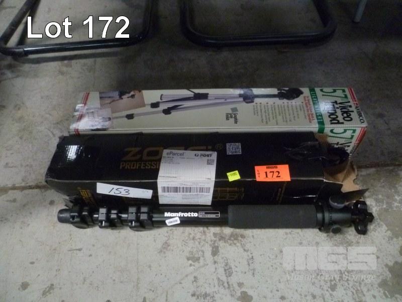 3 x CAMERA STANDS INC. AMBICO 5'7" VIDEO TRIPOD, ZOMEI PROFESSIONAL TRIPOD & MANFROTTO MONOPOD 680B