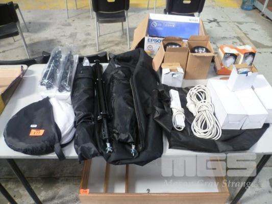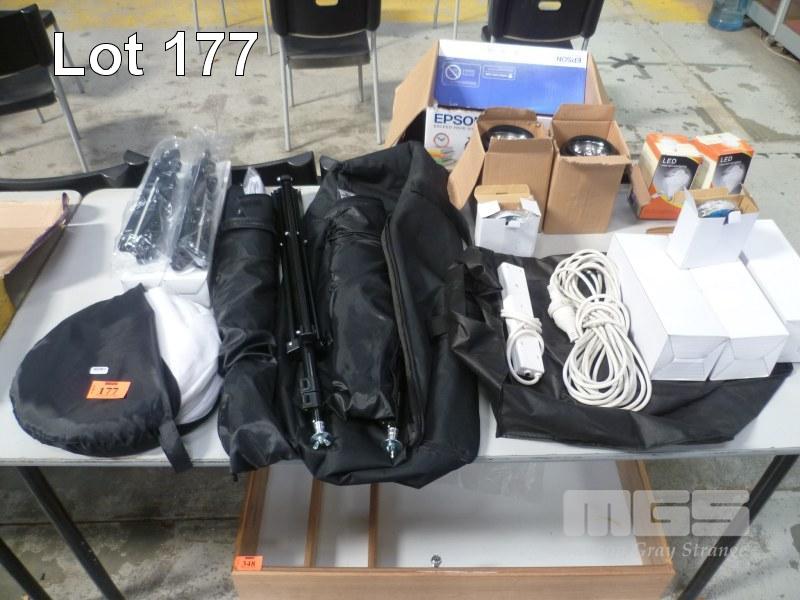 PHOTOGRAPHIC UMBRELLAS, STANDS, SHEET, STAGE LIGHT, LED GLOBES, CARRY BAG, ETC
