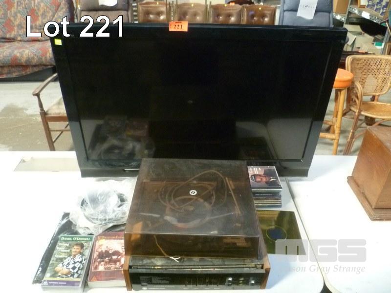 BRAVIA 40" LCD DIGITAL TV, (NO REMOTE), AWA TURNTABLE, ALL FAULTS, CD'S, SINGLES & VHS TAPES
