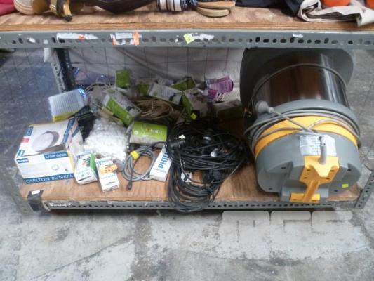 PULLMAN VACUUM, (NO CONNECTIONS), ASSORTED LIGHT GLOBES, PART LIGHT GLOBE EXTENSION CABLE, ETC