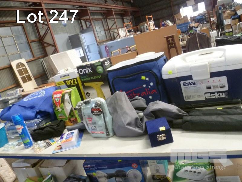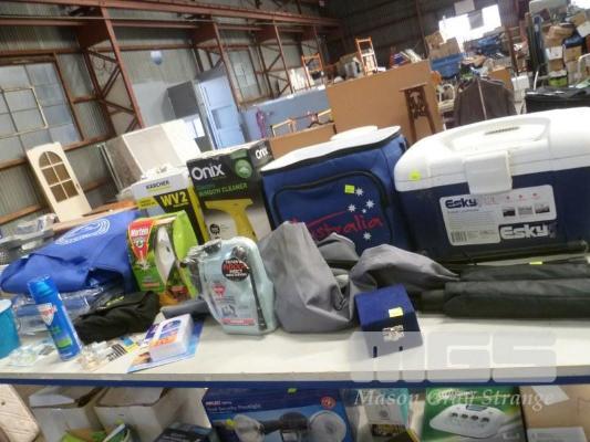 BLUE PLASTIC TARPS, ESKY, WINDOW CLEANERS, CAMP CHAIR, ETC
