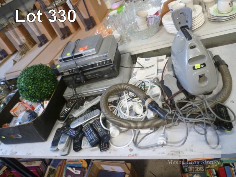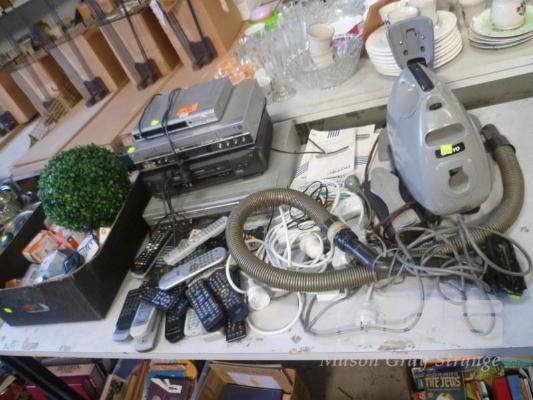LG DVD/VCR COMBO DC593W, SAMSUNG VCR, SV-220B, LG VCR, GC990W, ASSORTED REMOTES, LIGHT GLOBES, ETC, 1 x TABLE