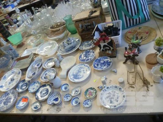 ASSORTED BAKING DISHES, WILLOW WARE, UTENSILS, ETC, 1 x TABLE
