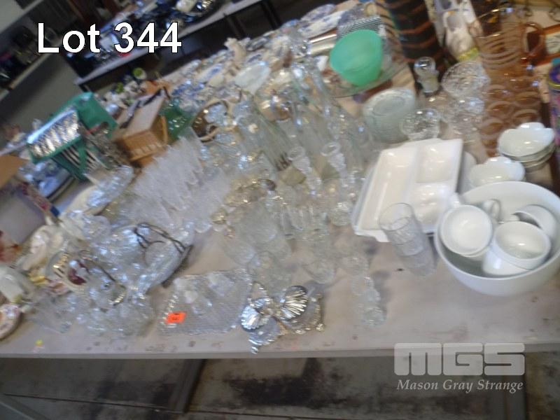 ASSORTED CRYSTALWARE, CROCKERY, ETC, 1 x TABLE