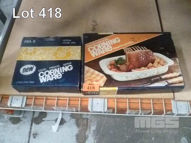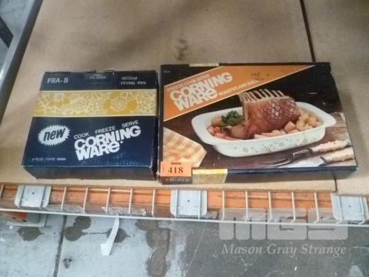 2 x PIECES OF CROWN CORNINGWARE, OLD/NEW IN BOX. "MEDIUM FRYING PAN" & "ROASTER AND RACK".
