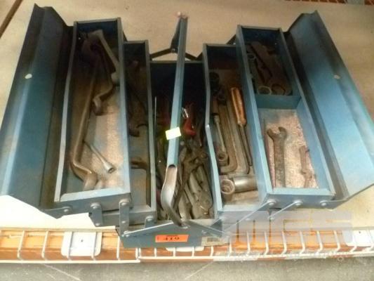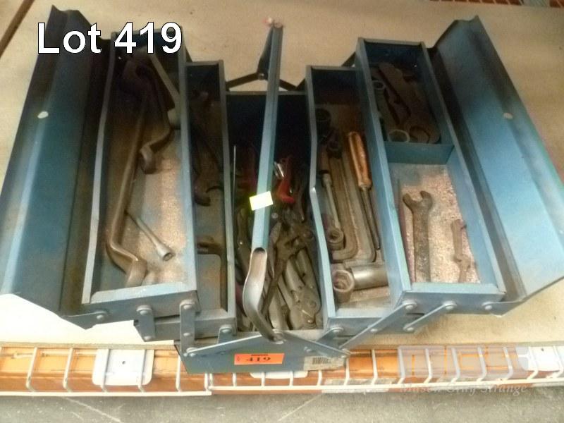 BLUE STEEL CANTILEVER TOOL BOX AND CONTENTS OF HAND TOOLS