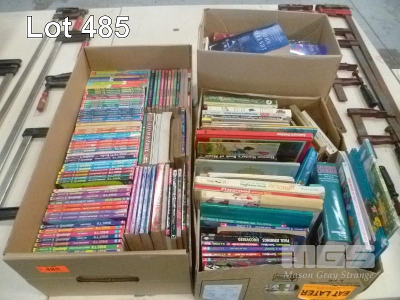 3 x BOXES OF BOOKS. INCLUDES LARGE COLLECTION OF GOOSEBUMPS BOOKS.
