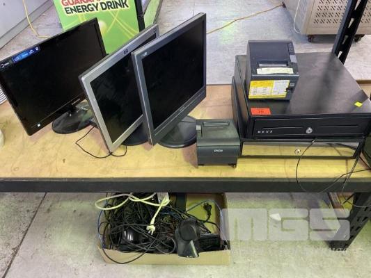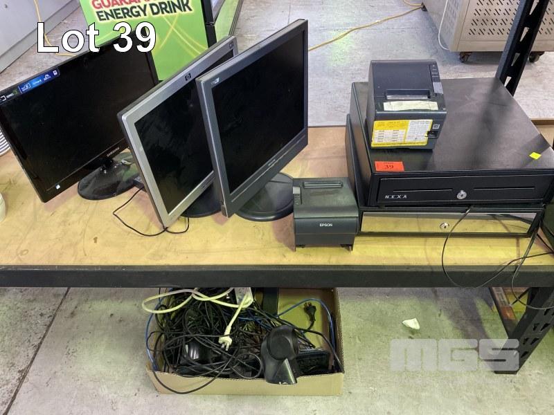 2 x POS REGISTERS, COMPRISING 2 x MONITORS, 2 x DOCKET PRINTERS & 2 x CASH DRAWERS (NO KEYS)